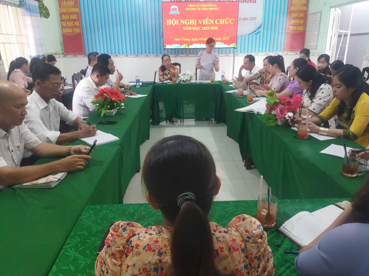 Chiều nay, ngày 09 tháng 10 năm 2025, trường TH Vĩnh Phong 1 long trọng tổ chức Hội nghị viên chức năm học 2025-2026. Hội nghị diễn ra trong không khí trang trọng, sôi nổi với tinh thần dân chủ, đoàn kết của tập thể viên chức trong đơn vị.